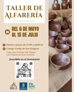 Te invitamos a participar en el Taller de Alfarería que celebraremos del 6 de mayo al 15 de julio en Piletas. Aprende a moldear el barro con tus propias manos en un espacio de creatividad, cultura y tradición. Clases, los martes y jueves de 17:00 a 20:00 h. ¡Plazas limitadas!Inscríbete