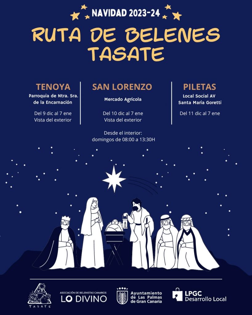 En esta navidad, la Asociación Cultural Tasate se estrena con una Ruta de Belenes en tres puntos del Distrito Tamaraceite-San Lorenzo-Tenoya como son Tenoya, San Lorenzo y Piletas.